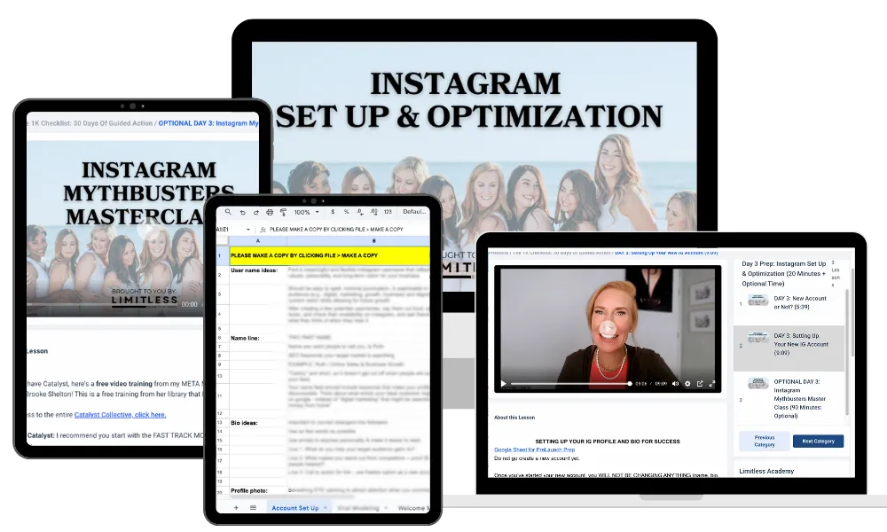 ✅ Access to the Limited Academy for 30 days including weekly coaching calls to troubleshoot, ask questions, and keep you moving forward. - $99 Value